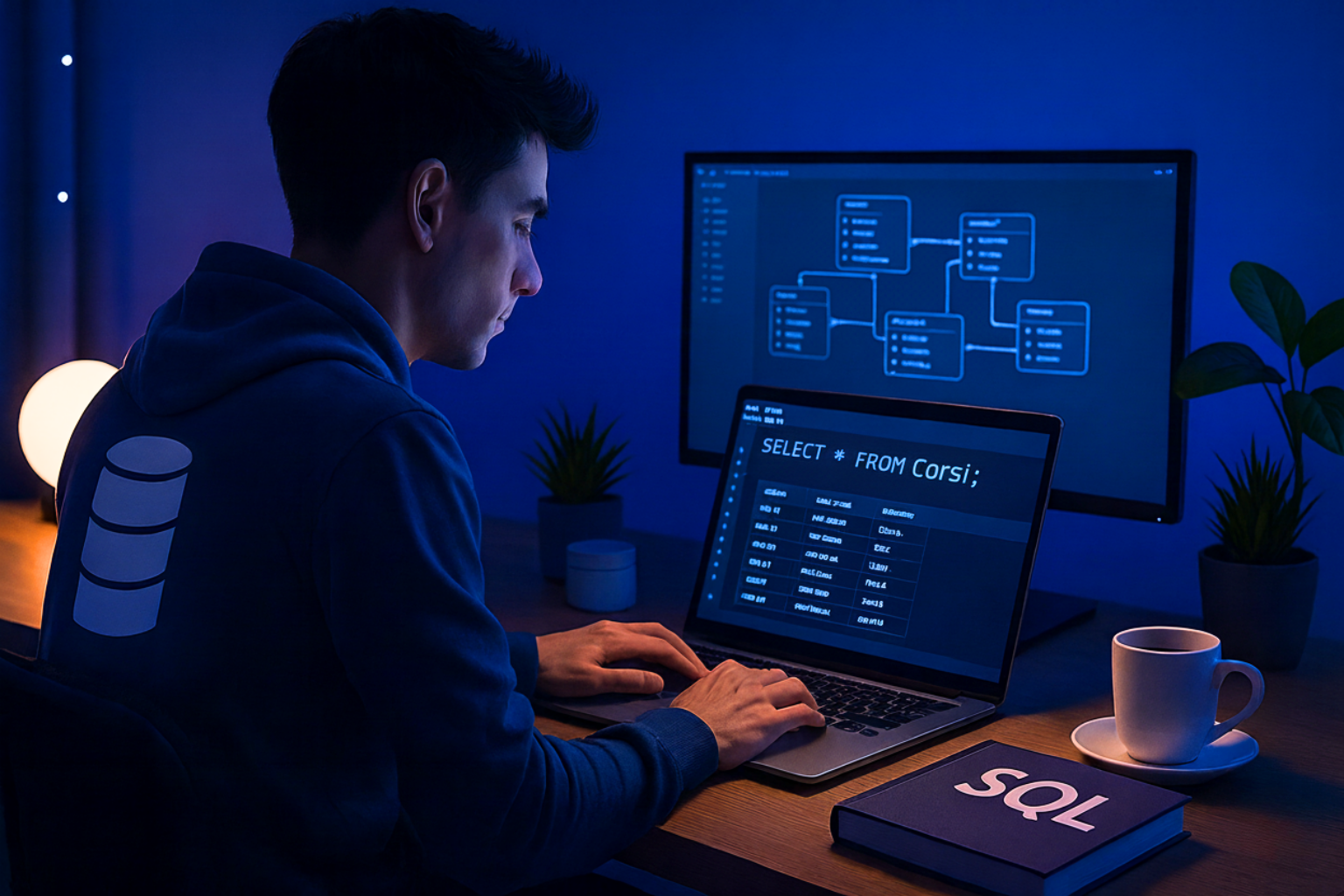 Il corso di SQL di CodeBreakers ti insegna a creare, gestire e interrogare database relazionali, permettendoti di scrivere query efficienti e ottimizzare la gestione dei dati in modo professionale.